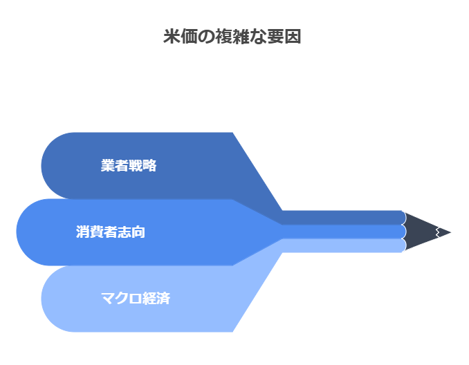 供給側の問題に加えて、市場の動向や私たち消費者の行動の変化も、米価格の形成に複雑な影響を与えています。考えられる主な要因は以下の通りです。