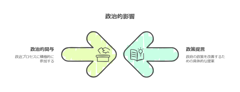 - 企業や団体が具体的な政策提案を行い、政治家や官僚に影響を与えることが有効。