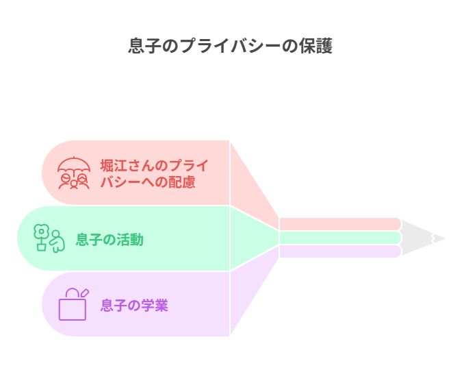 堀江さんは、自身の公の活動とは対照的に、家族のプライバシーを非常に大切にしており、息子の情報についても慎重に扱っています。