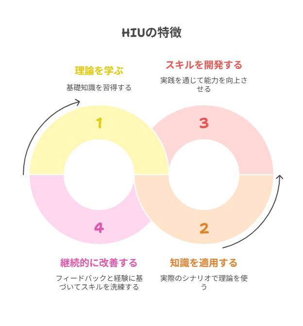 HIUの特徴は、学びを実践に結びつけることを重視している点です。これにより、理論だけでなく、実際に使えるスキルを身につけることが可能です。