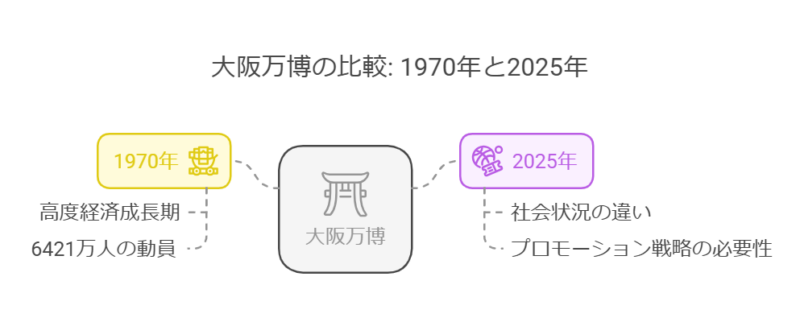 👉 1970年は「未来を感じるワクワク感」が強かったが、2025年は抽象的なテーマで共感を得にくい。