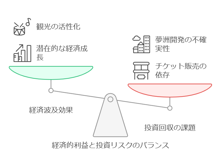 → 目標来場者 2800万人 を達成できなければ、期待された経済効果は大きく下振れする可能性がある。 - ✅ 費用対効果の問題