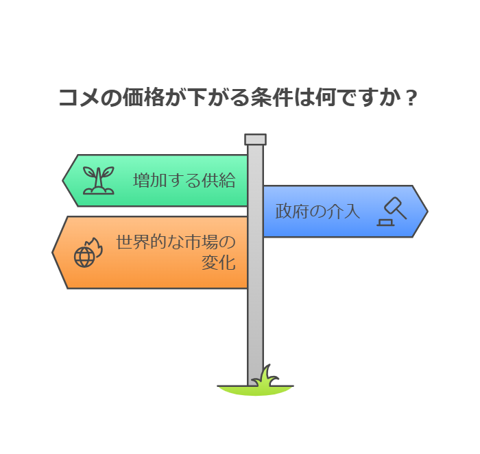 政府のコメ政策は、市場価格に直接影響を与えます。特に以下の点に注目が必要です。