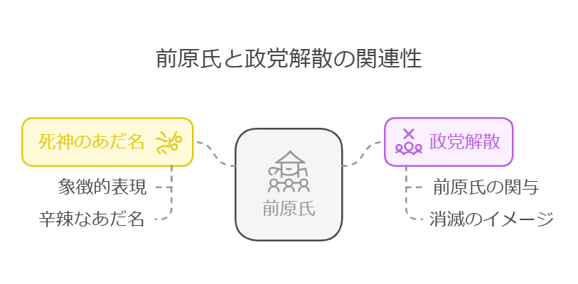 こうしてみると、前原氏が関わった政党がいずれも短期間で解体・再編されていることがわかります。「死神」と呼ばれるのは、この現象に対する皮肉な表現と考えられます。