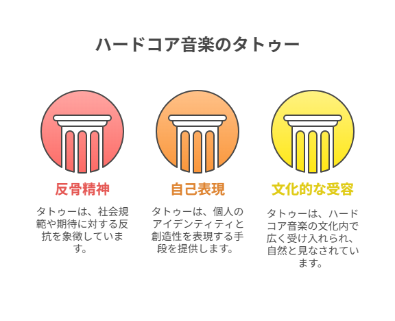 ハードコア音楽のカルチャーにおいて、タトゥーは反骨精神や自己表現の象徴として深く根付いています。タトゥーを入れることは、決して珍しいことではなく、むしろその文化的な文脈においては自然な行為とさえ言えます。