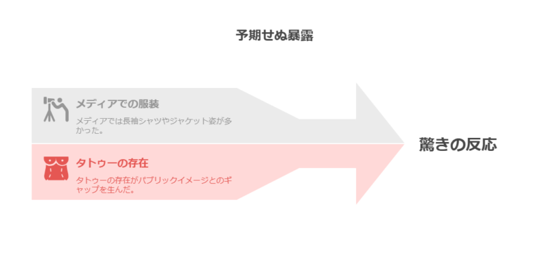 SNSでは、このような驚きの声が瞬く間に広がりました。それまでメディアに登場する際は、長袖のシャツやジャケット姿が多かったため、彼のパブリックイメージとタトゥーの存在との間に大きなギャップを感じた人が大半だったのです。