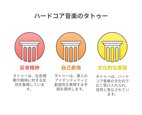 ハードコア音楽のカルチャーにおいて、タトゥーは反骨精神や自己表現の象徴として深く根付いています。タトゥーを入れることは、決して珍しいことではなく、むしろその文化的な文脈においては自然な行為とさえ言えます。